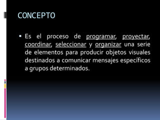 El documento habla sobre el diseño gráfico. Explica que el diseño gráfico es el proceso de comunicar mensajes a través de elementos visuales como folletos y carteles. También describe los elementos básicos del diseño gráfico como puntos, líneas, tipografía e ilustraciones y cómo estos elementos se organizan en una composición gráfica equilibrada. Además, traza brevemente la historia del diseño gráfico desde las pinturas rupestres hasta la invención de la imprenta y el desarrollo de interfaces gráficas