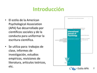 El documento es una guía sobre el estilo APA, 6ta edición, que aborda la escritura científica y su estandarización. Incluye información sobre citas, referencias, formato de documentos y aspectos éticos relacionados con la publicación. Además, proporciona ejemplos detallados sobre cómo citar correctamente diversas fuentes, incluidos libros, artículos y documentos electrónicos.