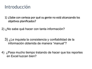 El documento aborda la necesidad de las organizaciones de identificar, resumir y categorizar grandes volúmenes de datos para convertirlos en información útil para la toma de decisiones. Se discuten los tipos y funciones de los sistemas de información, resaltando la importancia de la inteligencia de negocios (BI) en la recolección y análisis de datos, así como sus aplicaciones en diferentes áreas de negocio. Además, se recalcan conceptos erróneos sobre BI y la importancia del descubrimiento de conocimiento en bases de datos a través del proceso KDD.