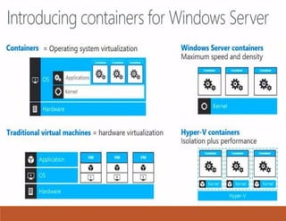 El documento aborda la importancia de los contenedores en comparación con las máquinas virtuales, destacando su capacidad para acelerar el despliegue de aplicaciones y reducir costos. Se enfatiza la normalización de entornos para desarrollo, control de calidad y producción, así como la integración de personas, procesos y herramientas. Incluye demostraciones de implementación con Docker y recursos adicionales para el aprendizaje.