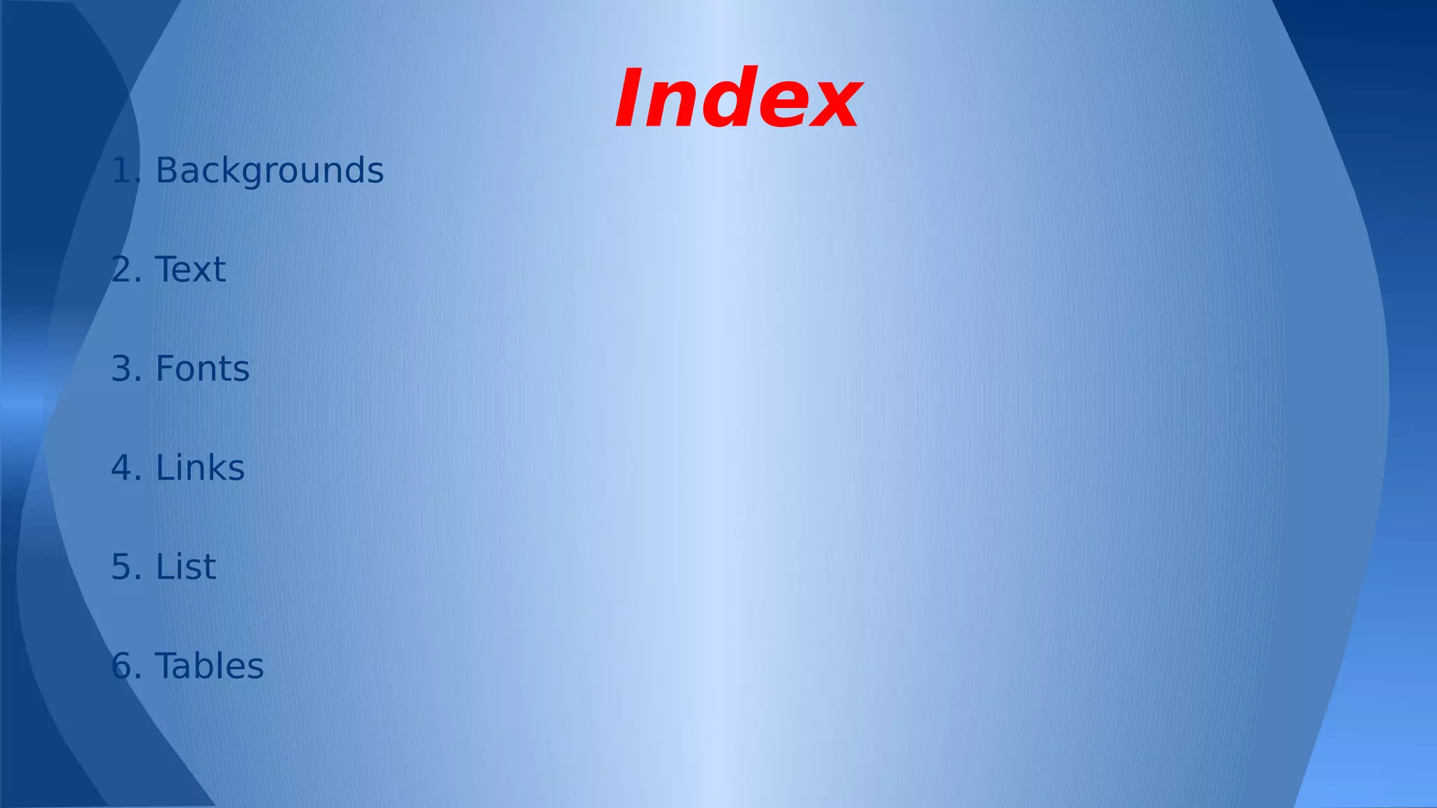 El documento presenta los principales elementos de CSS para dar formato a páginas web, incluyendo backgrounds, texto, fuentes, links, listas y tablas. Explica las propiedades para establecer colores de fondo, imágenes de fondo y su repetición, así como ejemplos para modificar el tipo y tamaño de fuente, añadir bordes a enlaces e imágenes, y dar formato a listas y tablas. Proporciona enlaces a páginas web de ejemplo para cada elemento.