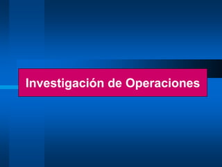 La investigación de operaciones (I de O) es la aplicación del método científico a problemas relacionados con el control y coordinación de operaciones dentro de una organización. La I de O utiliza modelos matemáticos y métodos cuantitativos para encontrar soluciones óptimas a estos problemas. Una de las técnicas fundamentales de la I de O es la programación lineal, la cual busca asignar recursos limitados de manera óptima entre actividades competitivas mediante un modelo matemático de funciones lineales sujeto a restricciones.