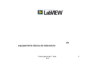 El documento presenta una introducción al software LabVIEW, que permite adquirir y monitorear datos de experimentos de forma virtual usando una PC. LabVIEW permite definir instrumentos virtuales interactuando con la computadora como si fueran instrumentos electrónicos personalizados. Se explican conceptos básicos como diagramas de bloques, paletas de herramientas y controles, y cómo crear programas (VIs) en LabVIEW.