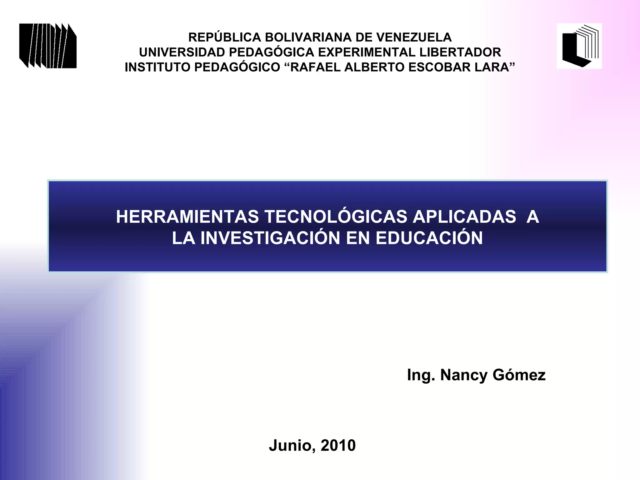 Este documento presenta algunas herramientas tecnológicas útiles para la investigación educativa, como el correo electrónico y las redes sociales. Recomienda usar estas herramientas de manera responsable y con permiso cuando se incluyan imágenes de otras personas. Concluye deseando mucho éxito a los estudiantes en su posgrado.