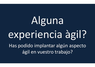 Este documento presenta los conceptos fundamentales de Scrum y el desarrollo ágil. Explica que Scrum es un marco de trabajo ágil para el desarrollo de productos que se basa en la transparencia, la inspección y la adaptación. También describe los roles clave de Scrum como el Product Owner, el Scrum Master y el Equipo de Desarrollo, así como los artefactos como el Product Backlog y el Sprint Backlog.
