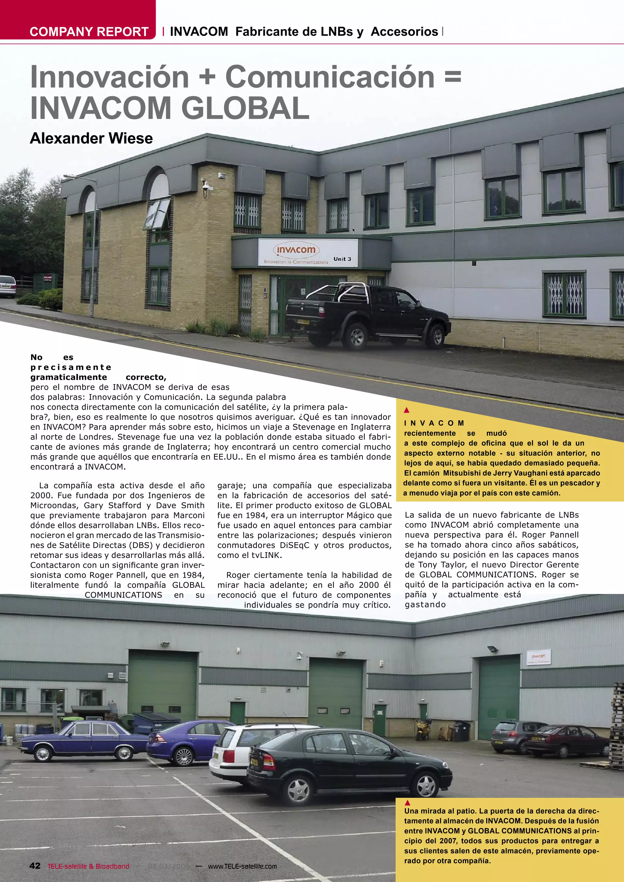INVACOM fabrica LNBs y accesorios para satélites. Recientemente se mudó a nuevas oficinas en Stevenage, Inglaterra. INVACOM ha experimentado un rápido crecimiento en ventas desde su fundación en 2000, gracias a innovaciones como LNBs con conexión de fibra óptica y sistemas para operadores VSAT. Actualmente, la mayoría de sus ventas son a clientes en Estados Unidos.