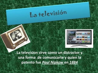Paul Nipkow patentó la televisión en blanco y negro en 1884, que sirvió como distractor y forma de comunicación. En 1936 comenzaron las transmisiones de televisión electrónica en Francia y el Reino Unido, llevando a un rápido desarrollo televisivo a pesar de pantallas pequeñas y alto costo. El iconoscopio, un dispositivo de emisión fotoeléctrica que genera imágenes con electrones, se usó en Estados Unidos desde 1936.