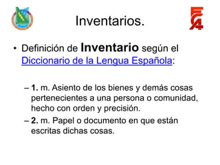 Este documento define e inventario y describe su importancia para las empresas. Explica que un inventario es una lista ordenada de los bienes y materiales que una empresa tiene disponibles. Además, detalla algunas técnicas clave para la gestión de inventarios como el sistema ABC, el punto de reorden y el modelo de cantidad económica de pedido. Finalmente, menciona algunos software de código abierto útiles para automatizar el control de inventarios.