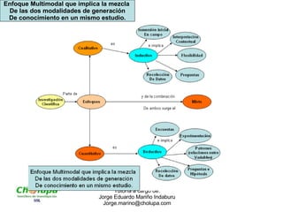El documento describe diferentes enfoques para la investigación, incluyendo enfoques multimodales e integrales. Explica el proceso general de investigación, desde plantear un problema hasta ubicarlo en un contexto. También cubre temas como generar ideas de investigación que sean atractivas e intrínsecamente motivadoras. El planteamiento del problema es la parte más importante para comenzar un proyecto de investigación.