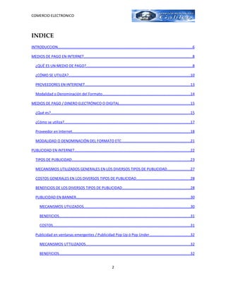 El documento presenta información sobre medios de pago en internet y comercio electrónico. Explica que existen varias opciones como tarjetas de crédito, débito, dinero electrónico y más. Describe cómo se utilizan las tarjetas de crédito y débito para realizar compras en línea de forma segura. También presenta el dinero electrónico como un sistema para adquirir créditos pequeños que se almacenan en la computadora y se transfieren a través de redes para gastar en compras electrónicas.