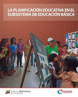 Este documento presenta información sobre la planificación educativa en el subsistema de educación básica en Venezuela. Describe el Proyecto Educativo Integral Comunitario (PEIC) y el Proyecto de Aprendizaje (PA), que son las herramientas centrales de planificación. Explica que el PEIC se elabora de manera participativa e integral entre la escuela y la comunidad, mientras que el PA lo elabora el docente y se enfoca en los procesos de aprendizaje de los estudiantes. También establece los principios, dimensiones y et