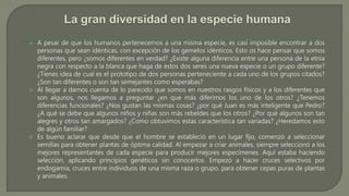 A pesar de que los humanos pertenecemos a una misma especie, existen diferencias entre las personas. Sin embargo, biológicamente nos parecemos mucho y compartimos el 99% de nuestro ADN con los chimpancés. Además, algunos comportamientos de insectos como las hormigas son similares a los de los humanos, como la agricultura, la ganadería y incluso la esclavitud.