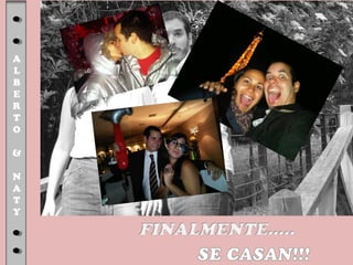 La invitación es para la boda de Alberto y Naty el 11 de julio de 2014 en el Ayuntamiento de Sant Cugat del Vallés a las 7 pm, seguida de una recepción en el jardín de una casa en Carrer Sant Jaume. Se pide a los invitados que confirmen su asistencia a la boda.