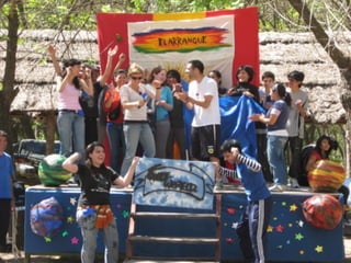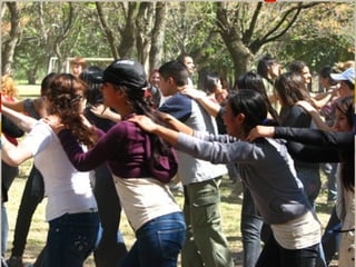 El documento anuncia un campamento que se llevará a cabo del 3 al 4 de octubre. Incluirá actividades como juegos y tiempo para pasar con amigos y profesores en un lugar donde también se servirá comida. Se espera que sea una experiencia inolvidable para los asistentes.