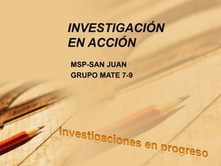 Los documentos presentan varias investigaciones acciones realizadas por maestros para mejorar el aprendizaje de conceptos matemáticos a través de estrategias como el uso de manipulativos, simulaciones, tareas auténticas, aprendizaje cooperativo, integración de movimiento corporal y tecnología. Los maestros utilizan instrumentos como pre y pos pruebas, diarios reflexivos y rúbricas para evaluar el impacto de las estrategias en el aprendizaje de los estudiantes.