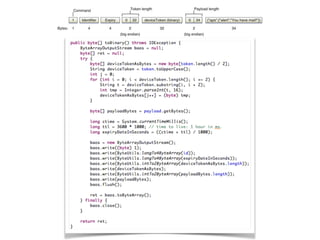 El documento aborda la teoría y programación de notificaciones en iOS, diferenciando entre notificaciones locales y remotas (push). Detalla métodos para manejar estas notificaciones, incluyendo ejemplos prácticos de programación y seguridad, así como la interacción con Apple Push Notification Service (APNS). Se concluye con recomendaciones sobre la gestión de notificaciones y mejoras en el diseño de aplicaciones relacionadas.