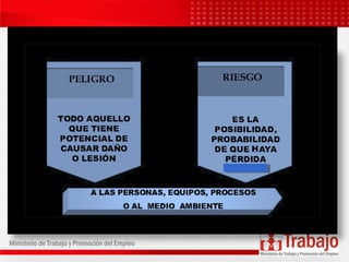Este documento presenta información sobre la identificación de peligros, evaluación de riesgos y control (IPERC). Explica que el IPERC es un paso fundamental del sistema de gestión de seguridad y salud en el trabajo. Detalla los diferentes tipos de peligros a los que pueden estar expuestos los trabajadores, incluyendo peligros físicos, químicos, biológicos, ergonómicos y psicosociales. Además, ofrece un caso práctico de cómo realizar un IPERC para la limpieza de oficinas