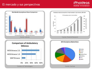 Este documento presenta una propuesta de concepto para aplicaciones móviles de marketing. Se proponen varias categorías de aplicaciones como publicación de contenido, asociación de marcas, juegos publicitarios y catálogos de productos. También se discuten diferentes modelos de negocio como aplicaciones promocionales, contenido gratuito, y aplicaciones de pago. Finalmente, se presenta un caso de estudio de una aplicación móvil para una empresa de polo.