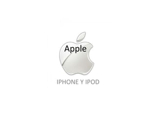 El documento describe las características técnicas del iPhone 4 y del iPod Touch. El iPhone 4 tiene un procesador Apple A4 de 1 GHz, pantalla Retina de 3.5 pulgadas con resolución de 960x640 píxeles, cámara de 5 megapíxeles, y soporte para redes inalámbricas como Wi-Fi y Bluetooth. El iPod Touch tiene un chip Apple A4 de 1 GHz, memoria de 8 a 64 GB, pantalla LCD de 960x640 píxeles, y conectividad Wi-Fi para descargar música, aplicaciones