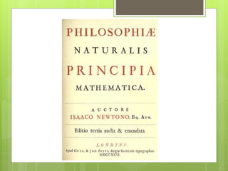 Isaac Newton nació en 1643 en Inglaterra. Tuvo una infancia difícil sin conocer a su padre y viviendo con sus abuelos. Destacó por su inteligencia para construir maquetas y objetos mecánicos. Estudió en la Universidad de Cambridge donde desarrolló los fundamentos del cálculo y descubrió la gravedad universal. Publicó sus descubrimientos en 1687 en su obra "Philosophiae Naturalis Principia Mathematica". Newton realizó importantes contribuciones a las matemáticas y la física que sentaron las bases de la