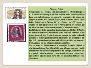 1) Isaac Newton nació en 1643 en Inglaterra y realizó importantes contribuciones a campos como matemáticas, física, óptica y mecánica.