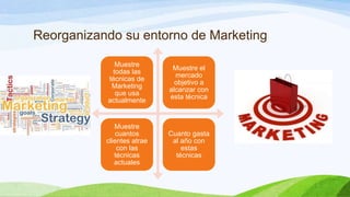 El documento proporciona consejos sobre cómo mejorar las técnicas de marketing digital de una empresa. Recomienda segmentar la audiencia objetivo e investigar sus intereses y comportamientos en línea para llegar a ellos de manera más efectiva. También sugiere incorporar redes sociales como Facebook y Twitter, pero advierte que requieren tiempo y esfuerzo para administrar. Además, ofrece pautas sobre cómo captar la atención de los visitantes al sitio web y lograr que se queden más tiempo revisando el contenido.