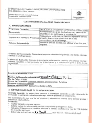 Ismael Enrique Castellanos Sanabria presenta evidencia de su conocimiento y servicio al cliente a través de varias listas de verificación que incluyen una exposición, feria del empleo y emprendimiento.