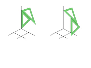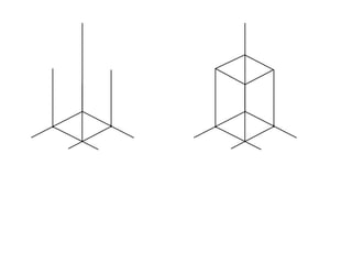 El documento proporciona 9 pasos para dibujar una pirámide en isométrica, incluyendo trazar los ejes X, Y y Z a 120 grados, llevar las medidas sobre los ejes para dibujar la base, trazar paralelas a los vértices de la base para formar las caras, marcar y unir puntos en las aristas para dibujar la base superior, y trazar diagonales para completar la pirámide.