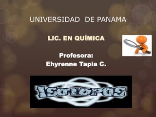 Este documento explica conceptos básicos sobre isótopos, incluyendo su definición, clasificación, vida media y tipos de radiación. También describe usos de isótopos en medicina como el cobalto-60 para tratamiento de cáncer y el fósforo-32 para diagnosticar enfermedades óseas. Finalmente, cubre temas como masa atómica relativa, ejemplos de cálculos isotópicos y diferencias entre fisión y fusión nuclear.