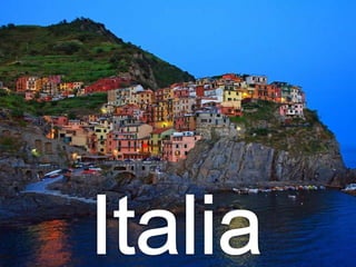 El documento proporciona información sobre Italia, incluyendo su himno nacional, moneda, bandera, idioma, presidente y primer ministro. Describe algunas comidas típicas italianas como el risotto, la pizza y la pasta. Además, menciona algunos de los monumentos más importantes de Italia, como el Arco de la Paz en Milán, el Coliseo Romano en Roma, la ciudad de Florencia y la Plaza de San Marcos en Venecia.