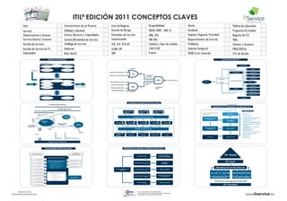 Este documento presenta un diagrama de los procesos de ITIL Edición 2011. Muestra los procesos de estrategia de servicio, diseño de servicio, transición de servicio, operación de servicio y mejora continua de servicio, así como sus principales actividades, entradas, salidas y documentos clave. El diagrama también destaca la importancia de la mejora continua para mantener la alineación entre TI y el negocio.