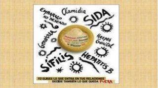 Este documento ofrece información sobre las enfermedades de transmisión sexual (ETS) y responde preguntas frecuentes sobre los síntomas, el diagnóstico y la transmisión de ETS. Explica que muchas ETS no presentan síntomas visibles y que es posible tener una ETS sin saberlo. También señala que la única forma segura de saber el estado de una pareja es que esta lo comunique abiertamente y que algunas ETS pueden transmitirse a través de besos si hay sangre u otras lesiones en la boca.