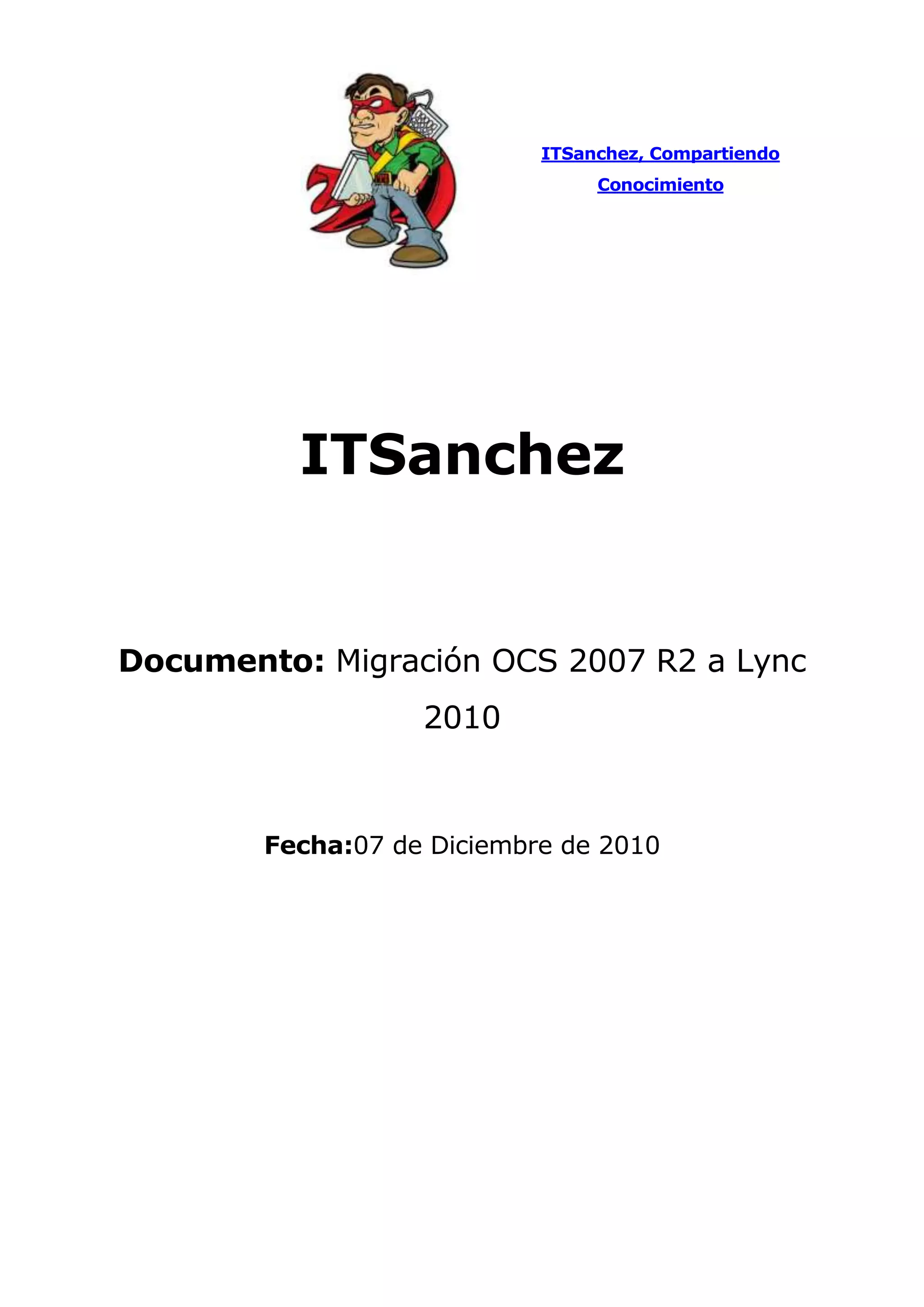 Este documento resume los pasos para migrar un pool de OCS 2007 R2 a Lync 2010, incluyendo actualizar los servidores y clientes de OCS, instalar los requisitos en el servidor de Lync, importar la topología de OCS en el Creador de Topologías de Lync, publicar la nueva topología, habilitar la topología e importar las configuraciones, y migrar las cuentas de usuario mediante el Panel de Control de Lync o el comando PowerShell Move-CsLegacyUser.