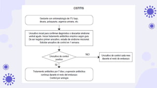Este documento discute la epidemiología, etiología, manifestaciones clínicas y tratamiento de la vulvovaginitis en mujeres embarazadas. La vulvovaginitis es común durante el embarazo y puede ser causada por varios agentes infecciosos o irritantes. Los síntomas incluyen prurito, ardor y secreción vaginal anormal. El tratamiento depende del agente causante identificado mediante examen.