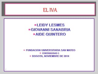 El documento explica los conceptos fundamentales del Impuesto al Valor Agregado (IVA) en Argentina. El IVA se paga sobre la compra de la mayoría de productos y servicios, aunque algunos están exentos. El momento en que se genera el IVA se conoce como causación e incluye hechos como la venta, prestación de servicios, uso personal de bienes producidos, importación de mercaderías y más.