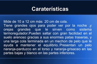 El jerbo de Egipto es un roedor nativo de África y el Medio Oriente. Mide entre 10-12 cm de largo más 20 cm de cola, y tiene grandes ojos y orejas para ver y regular su temperatura en la noche. Escava madrigueras para protegerse del desierto y se alimenta principalmente de semillas, aunque también come flores, hierbas, frutas e insectos. Las hembras dan a luz tras 1 mes de gestación entre 4-10 crías.