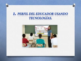 El documento presenta lineamientos y objetivos para la integración de tecnologías de la información y comunicación (TIC) en la educación. Propone que los docentes utilicen herramientas TIC para hacer sus clases más interactivas y centradas en el estudiante, evaluando continuamente el progreso de los alumnos. También destaca la importancia de capacitar a los docentes en didácticas digitales y proveer infraestructura TIC en las escuelas.