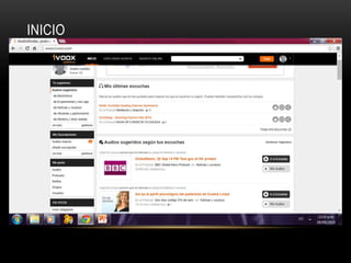 El documento detalla el proceso para subir audios a una plataforma de radio online, incluyendo pasos como seleccionar el archivo, llenar un formulario y aceptar las condiciones. También menciona la importancia de compartir el contenido en redes sociales. Además, se proporciona orientación sobre cómo gestionar y acceder a los audios subidos.