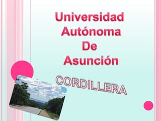 El departamento de Cordillera se encuentra en el centro oeste de Paraguay. Sus principales actividades económicas son la agricultura, incluyendo el cultivo de algodón, piña, arroz y cítricos, así como la avicultura. El departamento contiene sitios turísticos populares como la Basílica de Caacupé y el Museo Hassler. Cordillera tiene una población de alrededor de 283,000 habitantes y su capital y ciudad más grande es Caacupé.