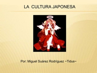 Este documento ofrece una introducción general a la cultura japonesa. Resume que Japón es un archipiélago ubicado en el este de Asia, con Tokio como su capital. Explora brevemente la población, economía, agricultura, educación y comercio exterior de Japón. También describe las principales religiones del país, el sintoísmo y el budismo, y cómo han evolucionado a través de la historia.