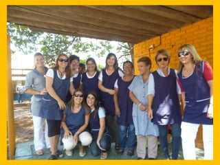 Este documento habla sobre las maestras y auxiliares que trabajan en un jardín de infantes y sus esfuerzos para estimular a los niños, involucrar a los padres y celebrar eventos. También describe cómo usan la tecnología y fomentan el hábito de la lectura entre los niños y sus familias.