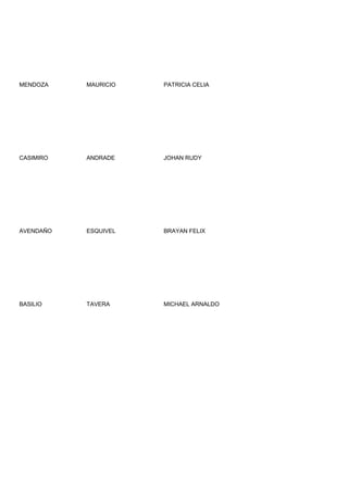 Este documento contiene una lista de nombres de apellidos. Consiste en cuatro columnas con nombres y apellidos de personas. No incluye ninguna otra información o detalles.