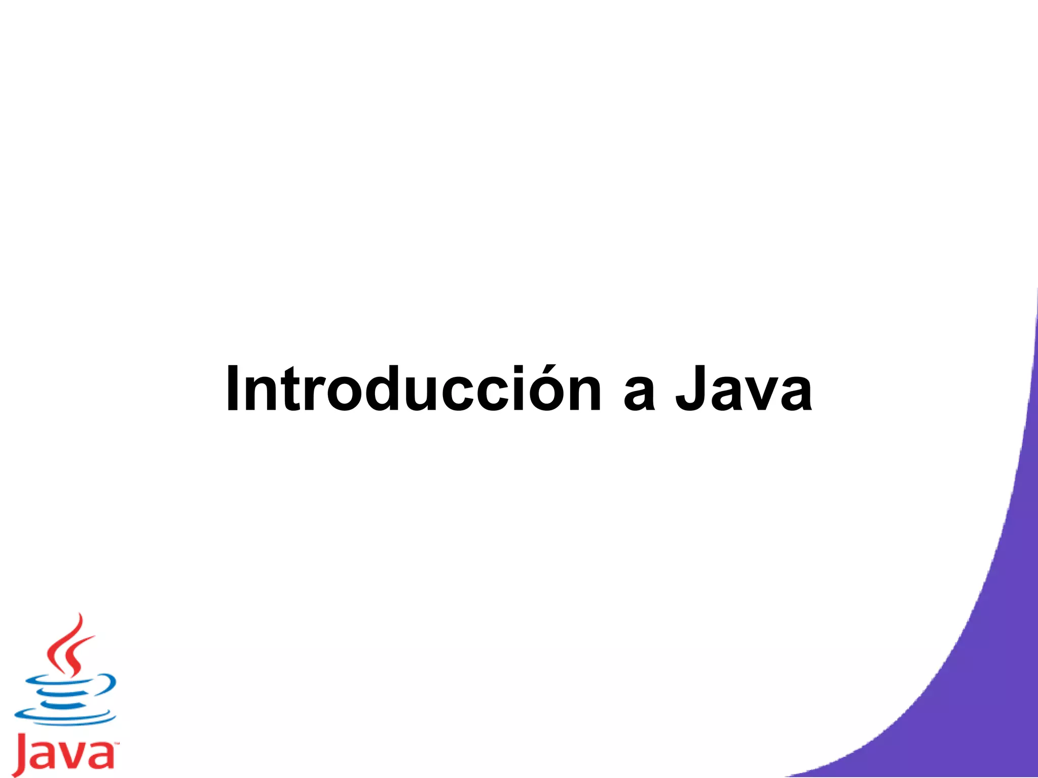 Java fue creado originalmente en 1991 por Sun Microsystems para aplicaciones de cajas receptoras de televisión. Java es un lenguaje de programación orientado a objetos, interpretado y compilado que es multiplataforma y se utiliza comúnmente para el desarrollo de aplicaciones web. El programa Java se compila a bytecode que es ejecutado por la máquina virtual de Java (JVM) en cualquier sistema operativo.
