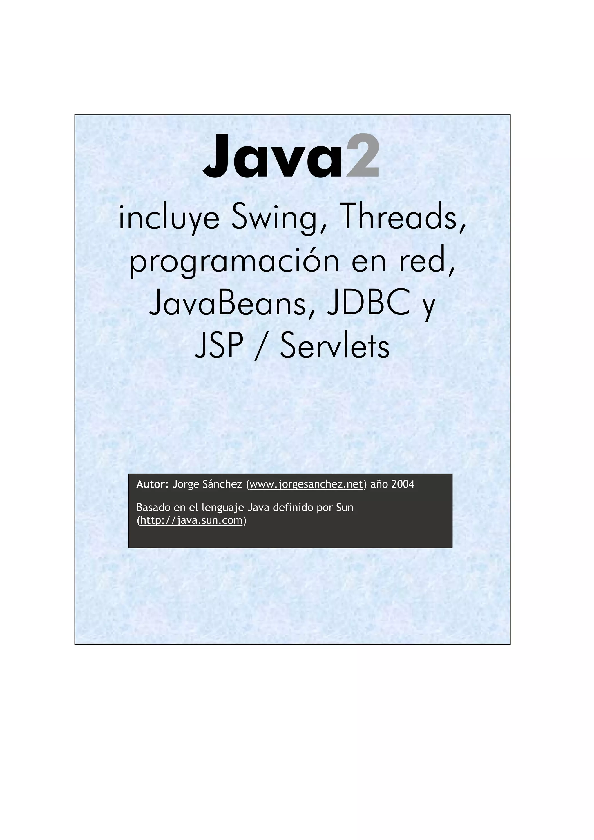 Este documento proporciona una introducción a Java, incluyendo sus características principales como Swing, hilos, programación en red, JavaBeans, JDBC y JSP/Servlets. Explica conceptos básicos como variables, tipos de datos, estructuras de control de flujo, arrays, objetos y clases. También cubre temas como herencia, excepciones, entrada/salida, ficheros y colecciones.