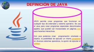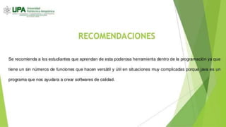 Este documento resume los conceptos clave de la programación orientada a objetos en Java. Explica que el estudiante aprendió sobre la creación de objetos útiles en Java y el uso de un IDE para desarrollo. También cubre la definición de datos y operadores de Java y cómo permite desarrollar múltiples aplicaciones.