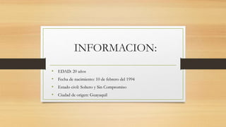 Javier Massón tiene 20 años, nació en Guayaquil el 10 de febrero de 1994 y estudia Economía con mención en Gestión Empresarial en la Escuela Superior Politécnica del Litoral. Escogió estudiar en la ESPOL porque es la mejor universidad del país que forma profesionales que contribuyen positivamente al desarrollo del Ecuador.