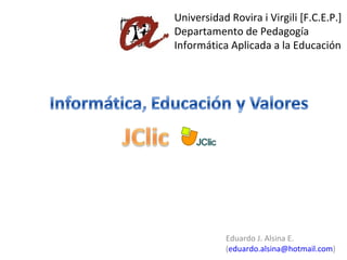 ![Universidad Rovira i Virgili [F.C.E.P.] Departamento de Pedagogía Informática Aplicada a la Educación Eduardo J. Alsina E. ( [email_address] )](https://image.slidesharecdn.com/jclic-090318005917-phpapp01/85/Jclic-1-320.jpg)