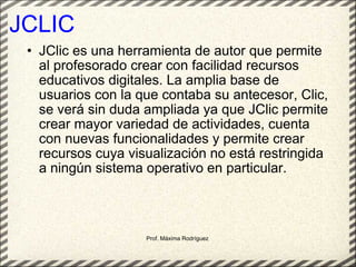 JClic es una herramienta de autor que permite crear recursos educativos digitales de forma sencilla. Se compone de cuatro aplicaciones principales: JClic Applet, JClic Player, JClic Author y JClic Reports Server. El documento explica cómo crear y configurar un nuevo proyecto en JClic Author, así como añadir recursos multimedia a la mediateca para poder incluirlos en las actividades.