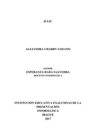 Este documento describe JClic, una herramienta de software libre para crear aplicaciones educativas multimedia. JClic consta de cuatro componentes principales: JClic applet, JClic player, JClic author y JClic reports. Permite crear diversos tipos de actividades didácticas de manera sencilla como rompecabezas, juegos de memoria, crucigramas y asociaciones. Tiene como objetivo facilitar la creación de material educativo y promover una cultura de aprendizaje constructivista.