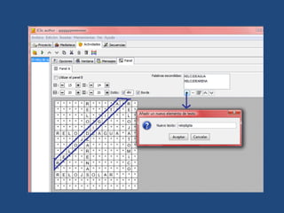 Este documento proporciona instrucciones para crear actividades educativas usando el software gratuito Jclic. Explica que Jclic es una plataforma basada en Java que permite diseñar actividades como presentaciones y sopas de letras en 11 pasos fáciles, como instalar el programa, crear un nuevo proyecto, seleccionar la pestaña de actividades, y agregar palabras para que los estudiantes encuentren.